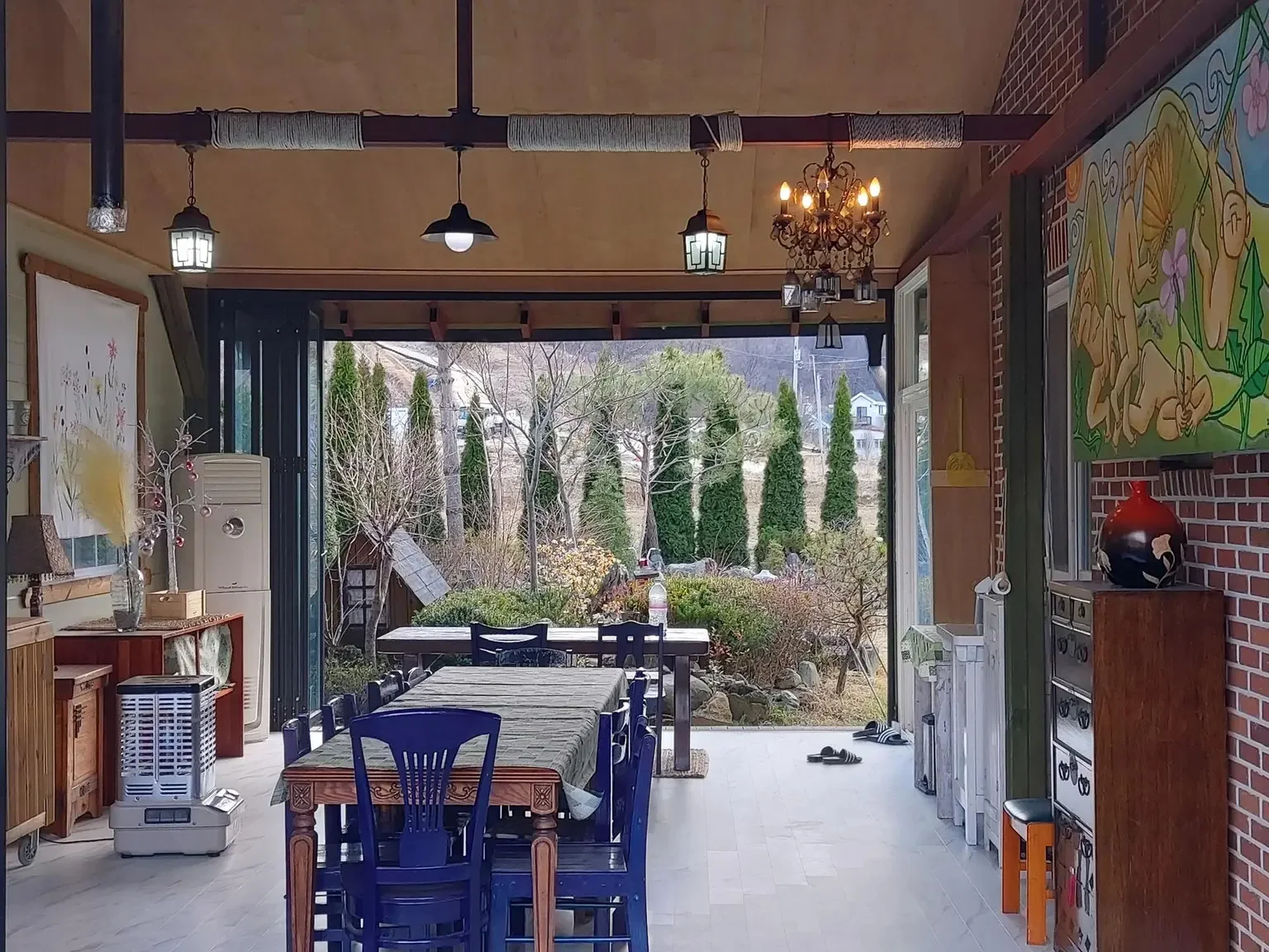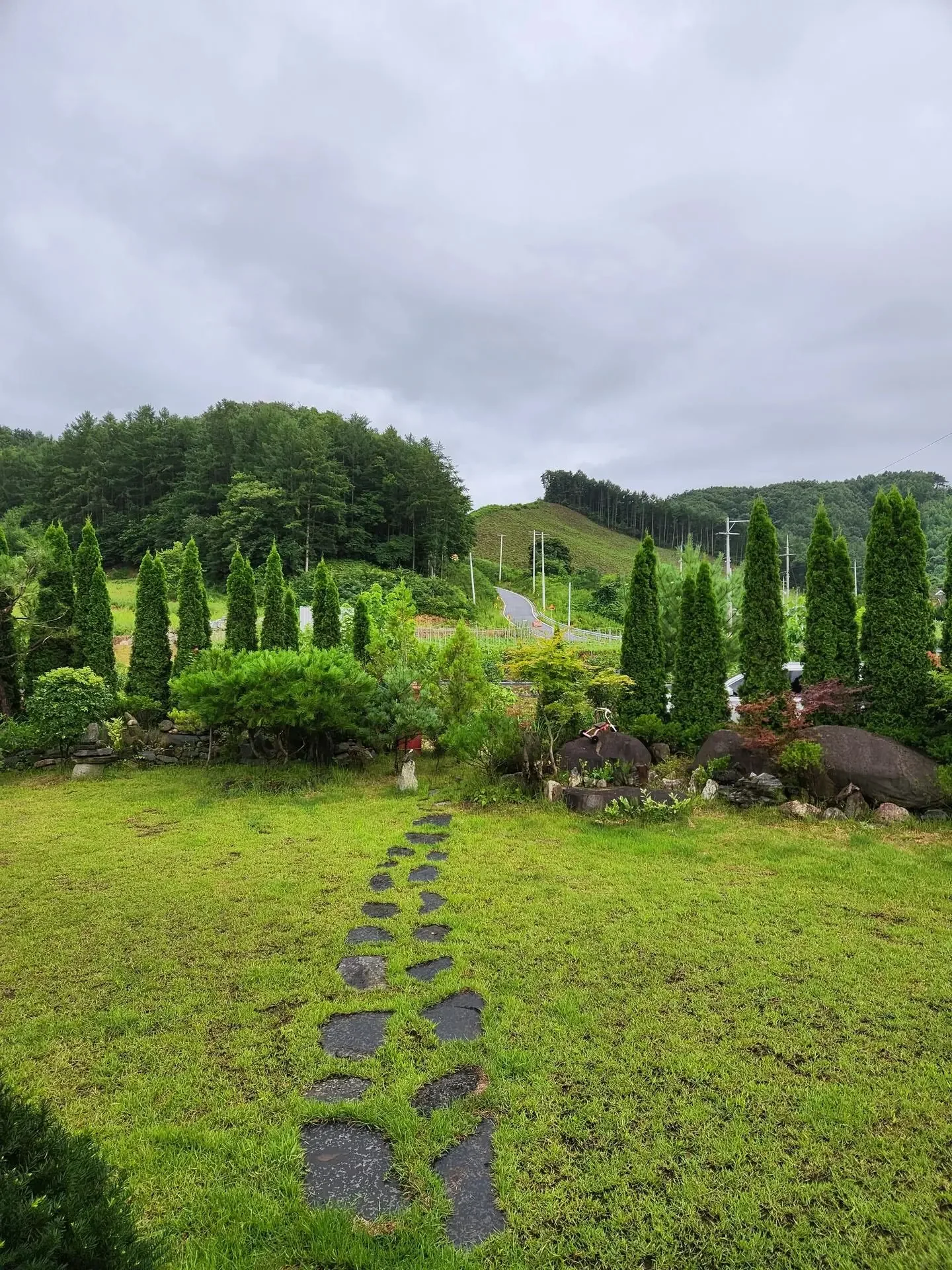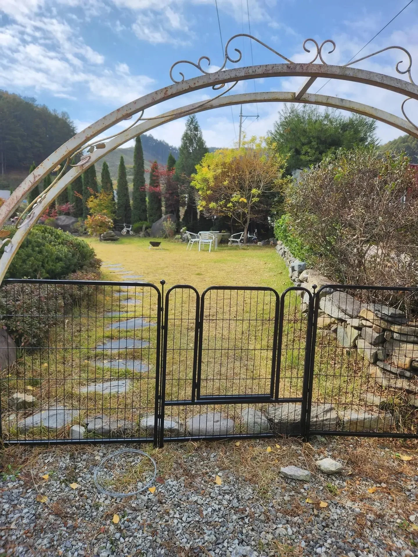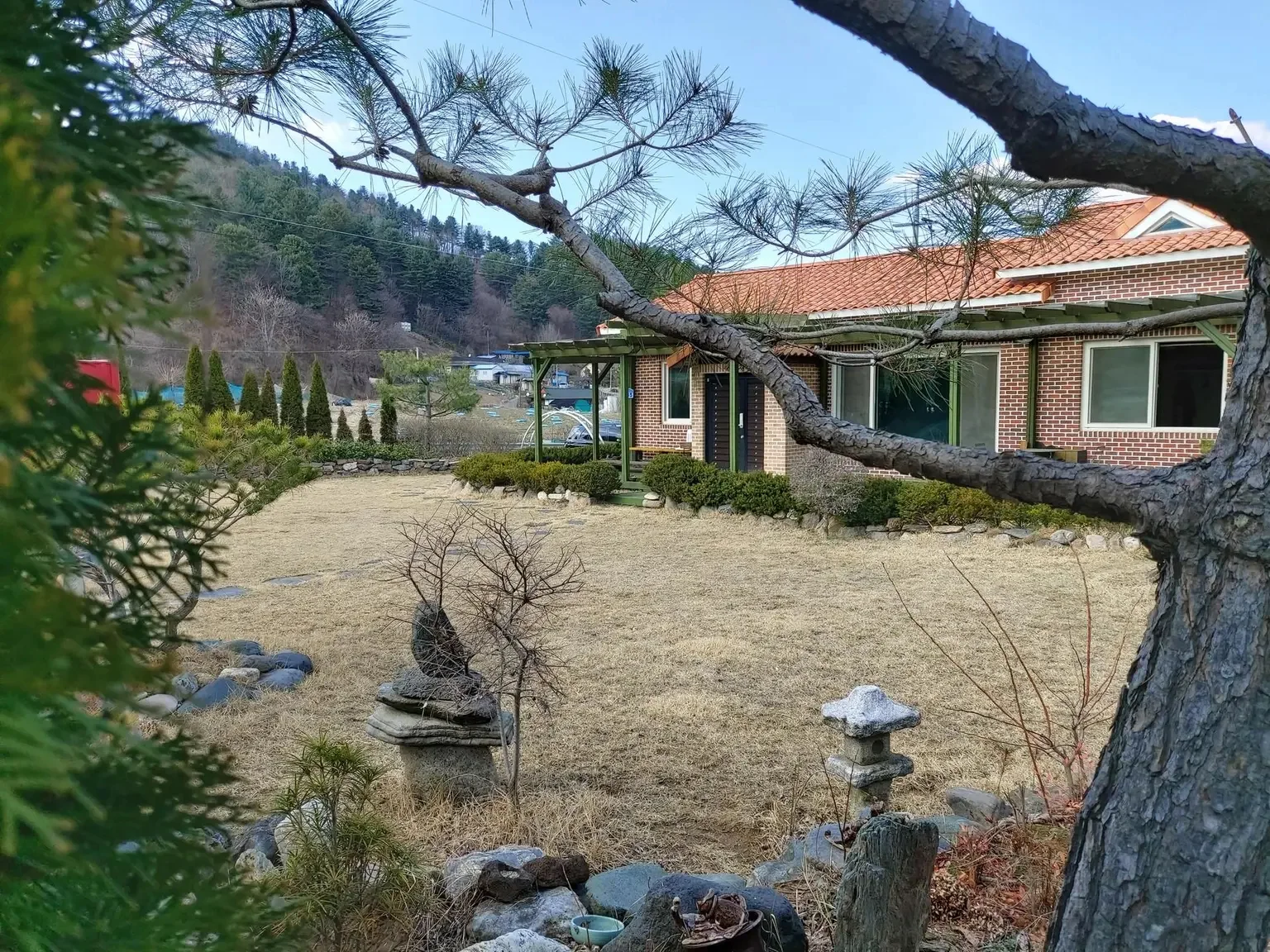 일단 창밖으로 보이는 마당이 너무 그림 같고 예뻐서 매일매일이 감탄이었고, 거길 자유롭게 노즈 워킹하며 즐기는 강쥐들을 보니 행복 그 자체였어요. 🐶😍 집 밖을 나서면 탁 트인 시야에 밭과 산이 있고, 강쥐들이랑 매일 동네 산책도 하고(울 강쥐들이 언제 논밭 사잇길을 걸어보겠어요 ㅎㅎ), 갈 데도 많았어요.