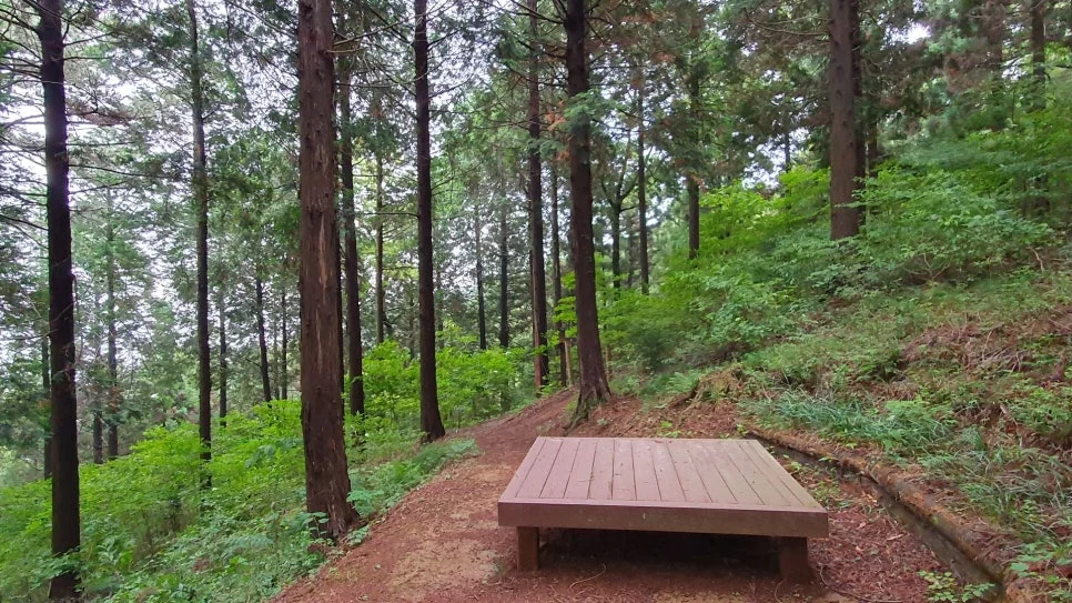 아파트가 계룡산 근처 골프장 가는 높은 곳에 위치해있어 복잡한 시내랑은 10~20분 거리에요. 숙소 산책로, 계룡산 하이킹도 가능. 숙소 정자에서 바라본 한려해상국립공원 섬뷰도 아름다웠어요.