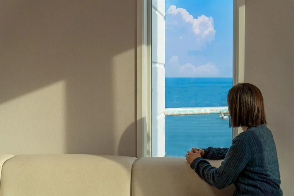 창밖으로 펼쳐진 바다와 산, 강원도 후기