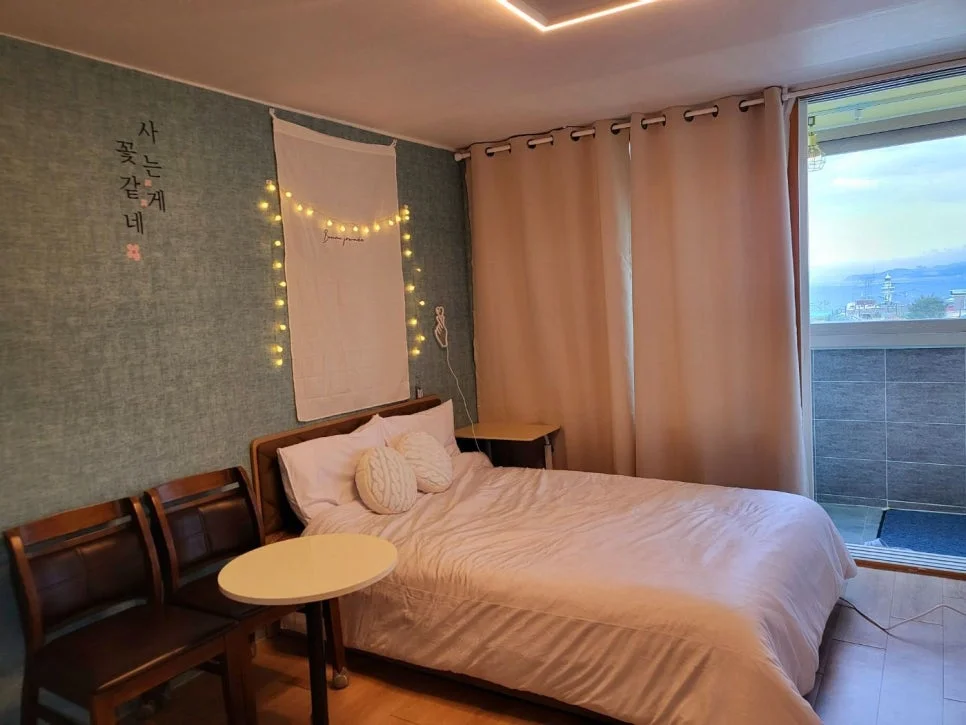 베란다 문을 열고 나가면 묵호 바다가 시원하게 펼쳐지는데, 기대 이상으로 뷰가 좋아서 놀랐어요.