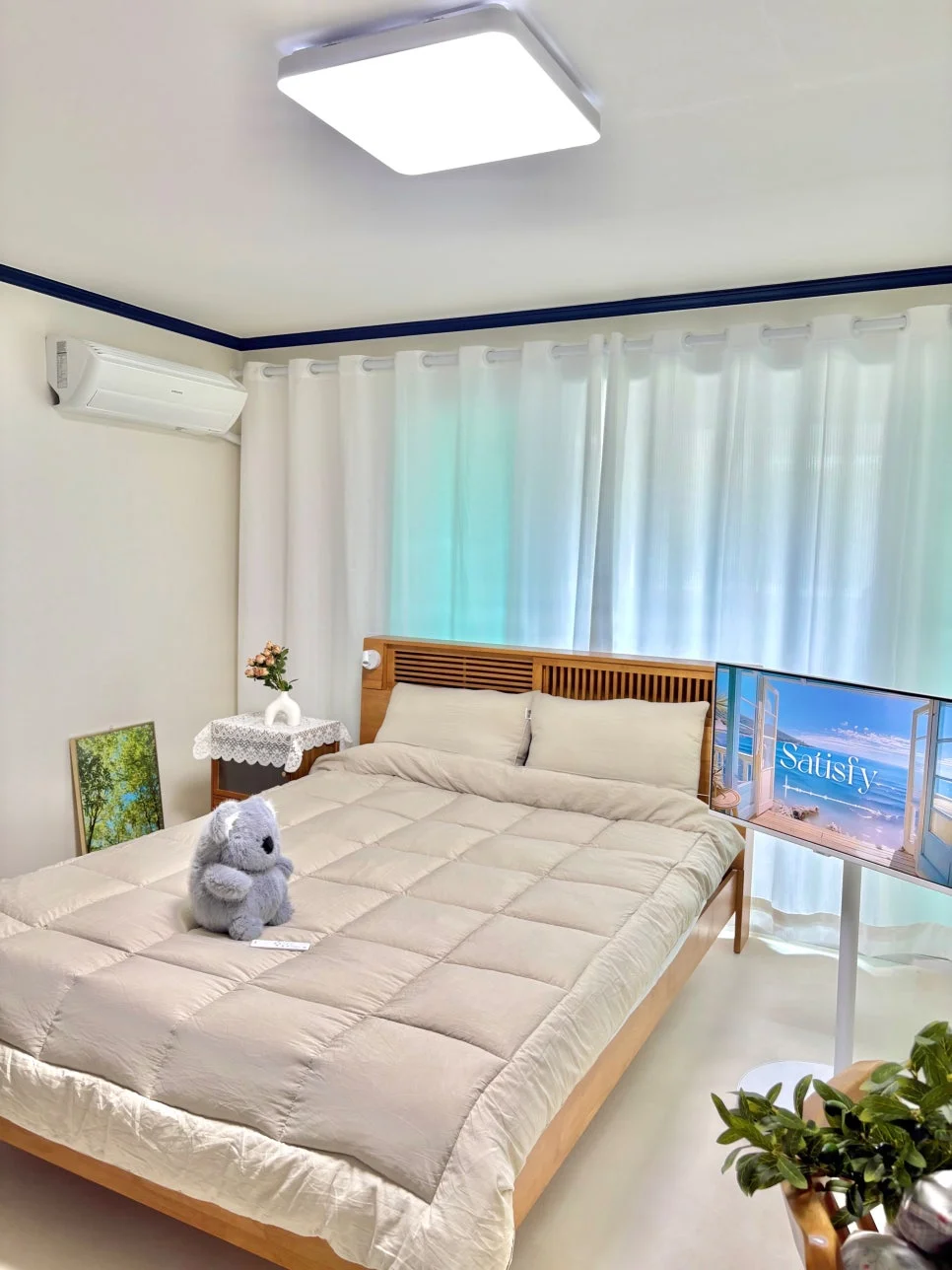 방 3개로 침대도 푹신하니 좋구요. 뜨신 물도 금방 나오고 난방도 잘 돼요. 세탁과 건조기 잘되고 주방용품도 잘 갖춰져 있어서 3주 사용하는데 문제없이 썼어요.