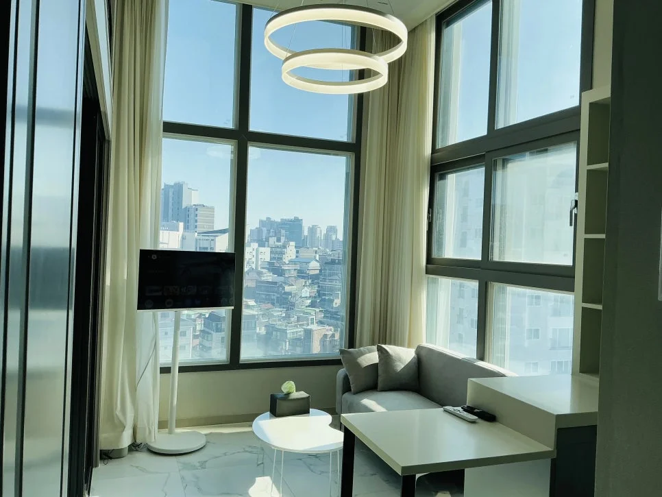 통창 코너뷰라 해가 집안 가득 들어와서 너무 좋았어요. 지내는 동안 매일 소파에 앉아서 차 마시면서 남산타워 보는 그 자체가 힐링이었고요. 노을 질 때 하늘이 붉게 물드는 걸 보는 것도 넘 분위기 있었어요. 복층 구조라 잠자는 공간이 분리된 것도, 빌트인 풀옵션도 지내는데 편리했어요. 그리고 드레스룸! 대박이에요. 짐이 많아 걱정했는데, 공간 정말 넉넉해서 짐 정리 너무 수월했어요. 짐 많은 분들 걱정 안 하셔도 될 것 같아요. 머무는 동안 교통 편리해서 여기저기 열심히 돌아다녔네요 ㅎ