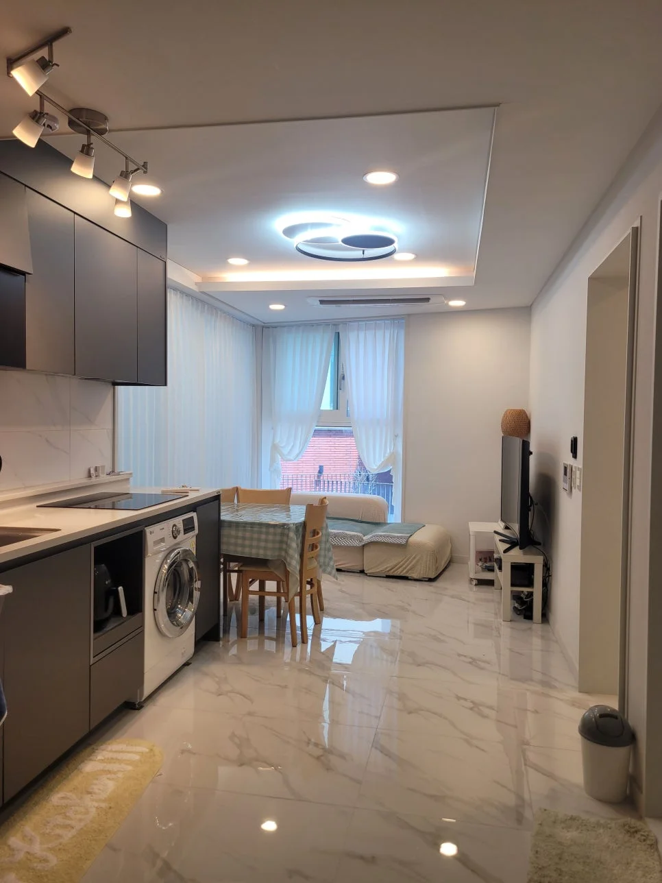 1. 집은 네 가족이 살기에 좁진 않았습니다. 자그마한 소품들, 미니멀한 가구들에 애들은 놀러 온 거 같아 좋아하고 웬만한 집기류 있을게 다 있어서 불편함이 없었어요.