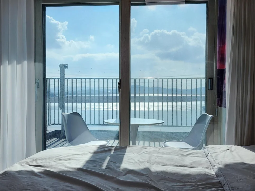 매번 늦게 끝나다 보니 거의 잠만 잤지만 잠자리도 너무 편안하고, 덕분에 상쾌한 출근하면서 일도 잘 된 거 같아요~ 제가 중간중간 연장했었는데 감사하게 연장도 잘 해주셔서 고마웠습니다~ 테라스가 있는 오피스텔은 진짜 이런 데서 휴식하면서 보내면 너무 좋았을 거 같아요~~사진이랑 하나 틀린 거 없더라고요~경치도 너무 좋고~다음에는 날 풀렸을 때 출장 잡히면 한 번 다시 와보겠습니다~~퇴근하고 테라스에서 경치 보면서 맥주 한 캔 딱하면 피로는 다 가실 거 같아요~~ 감사했습니다~~